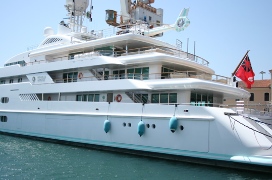 何と自家用ヘリコプターのあるプライベートの船です。モナコ近辺の港には世界中の富豪の船が停泊しています。