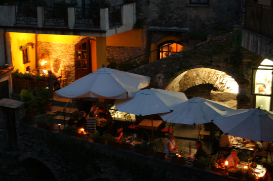 夜、村をお散歩すると昔水車小屋だった場所がレストランになった場所がありました。