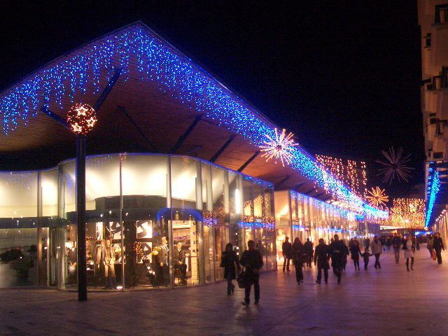 エクス・アン・プロヴァンスのメインのショッピング街のイリュミネーション。シャンゼリゼ通りも2年ほど前よりブルーのライトになっていますが、今の流行の色のようです