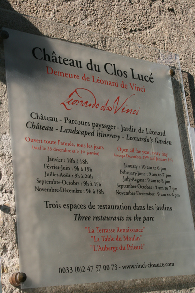 お庭の道しるべも可愛いですね。広大なお庭にはダ・ヴィンチの発明した作品の大きな模型があちこちに設置され、楽しくお散歩できるようになっています。お時間のある場合はお勧めです。私はあいにく1日で4か所を回るツアーで50分しか無かった為回れませんでしたが、その後アンボワ‐ズで絶景のロワール河とお城を眺めながらおにぎり弁当を食べ最高でした!