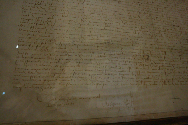 国王シャルル8世が“3500エキュ金貨でクロ・リュセの所有者となった売渡証書のオリジナルが展示されています。