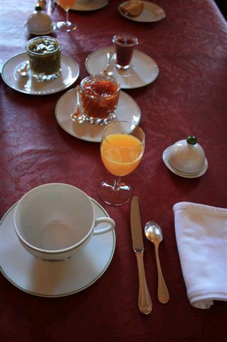 シャトーでの自家製ジャムとの朝食。シャトーに住む旦那さんが自ら用意してくれて、お喋りなどもしながら気さくな雰囲気です。