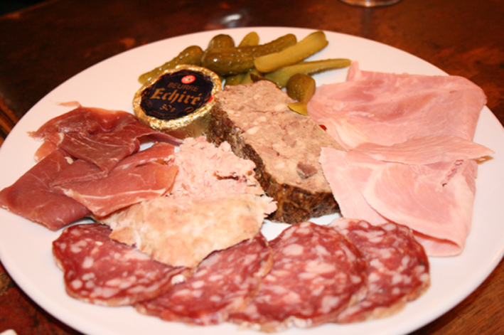 Entrée(オントレ、前菜)にみんなでシェアするのに丁度良いかとハムの盛り合わせを頼みましたが5人で調度良いくらいのボリュームでエシレのバターと共に、パンにつけておいしかったです。
