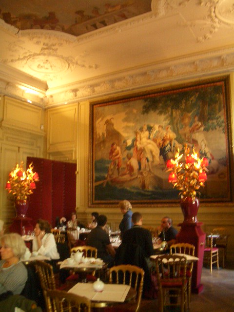 中には、おいしい山盛りサラダ!(フォアグラのパテや、サーモンなどが沢山のっていてゴージャス!)やおいしいそうなケーキが沢山ある素敵なカフェもあります。このサロンの天井画や絵画もコレクションの作品です。