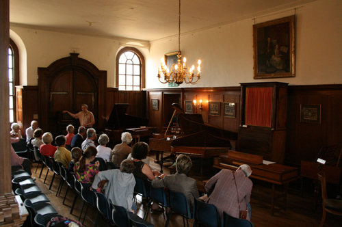 この日も休館日でしたが、ドイツから団体ツアーが来ていて楽器の説明をオーナーのRichard Burnettさんが弾きながらジョークを交えてしていました。