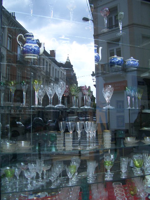 ガラスのアンテイーク屋。余談ですが、こういう風にガラスが並んでいると地震があったら大変!と考えてしまうのは日本人・・ですね。