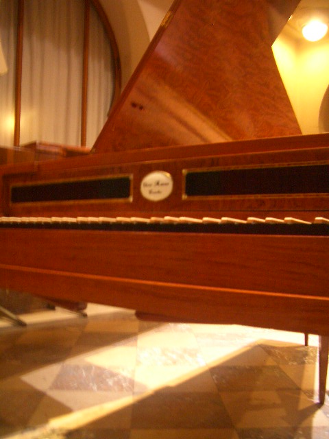 コンサート時に使う強いライトが直接チェンバロに当たると10分も弾いてれば調律が狂ってくる・・・・というので休憩の間にまた調律・・・と休みなし。