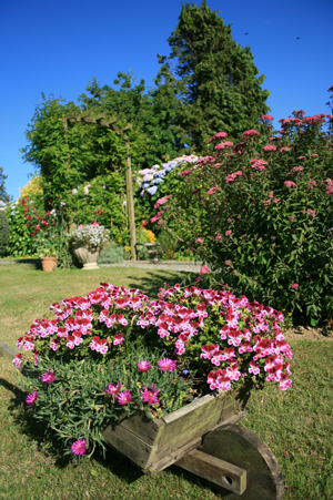 ガーデニングのコンクールが30年前からあるそうで、ご夫婦でデザインやお花の色合い等考えて植え、見事コンクールで優勝したそうです。とても手がかかっていて花が咲き乱れていました。