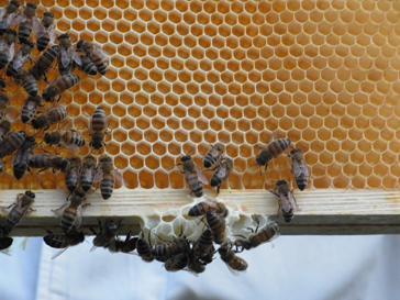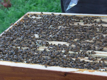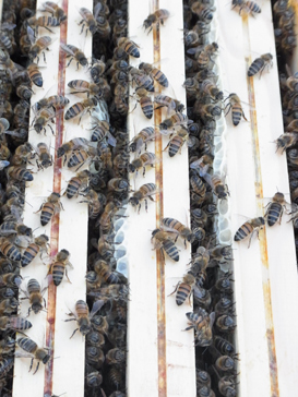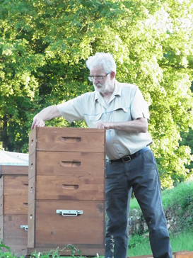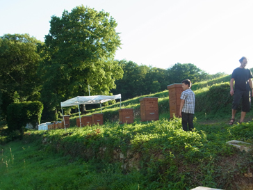 あの並んでいる箱は・・・蜂蜜を作っている箱ということで、中には数千匹の蜂がいます。大自然の中で季節によって近くにあるテイヨールなどお花が違うので味や蜂蜜の色も異なるそうです。