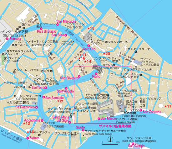 入り組んだヴェネツィアの地図。教会は、20個はあるのではないか***