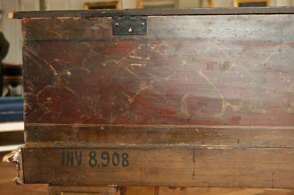 蓋の上の装飾。使用している木のせいか、かなり重かったですね。また、本体はオリジナルですが1700年代に蓋は取り換えられ、別の装飾になっているということです。
