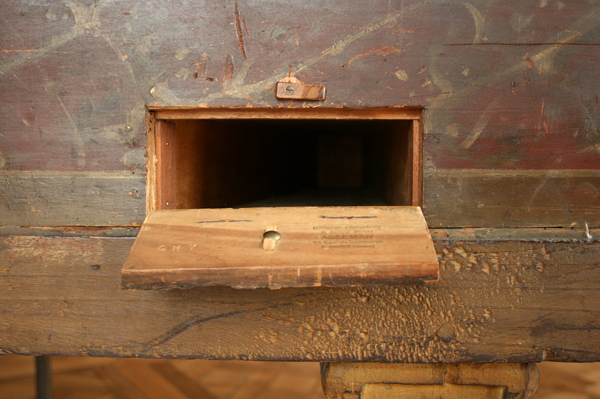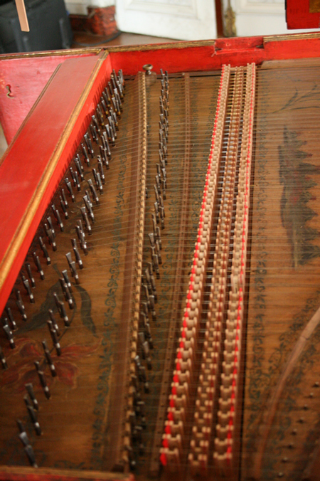 私のチェンバロもルッカースのコピーですが、この道具箱がついているのをてっきり忘れて、万が一コンサート前に弦が切れた時の為に弦が必要!あれ?ないない・・・と製作者に送って貰う様に聞いたのですが、道具箱にない?と電話で言われて、え?ちょっと待って・・・
