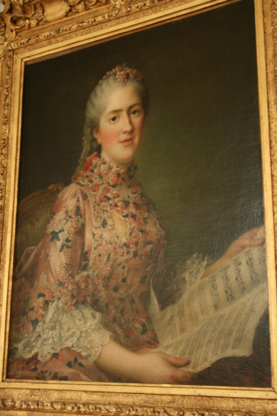 ヴェルサイユ宮殿の鏡の間のある方の”Madame de la Victoire(勝利のマダムの意味)という音楽好きのチェンバロ、ヴィオラ・ダ・ガンバを演奏している肖像画の残っているお部屋の近くに近年より2台のチェンバロが展示されています。