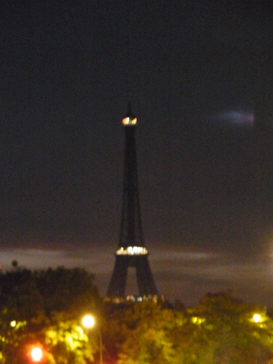 まだかまだか・・・と待たせ20-30分遅れて始まりました。いつも付いているライトが消えてまっ黒のエッフェル塔に。さあ、始まりです!
