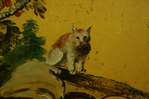 私のお気に入りは、チェンバロの先の方に描かれている猫ですね!