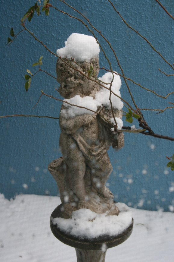ヴァイオリンを弾いているエンジェルの上にも積もってます!