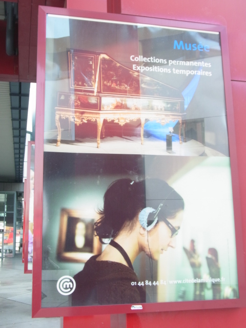 楽器博物館のチェンバロの広告。反射して見えにくいですが、名だたるオリジナルのチェンバロが沢山あり、オリジナルチェンバロでG.レオンハルト(毎年やっていました)やルセなどのコンサートも定期的にあります!