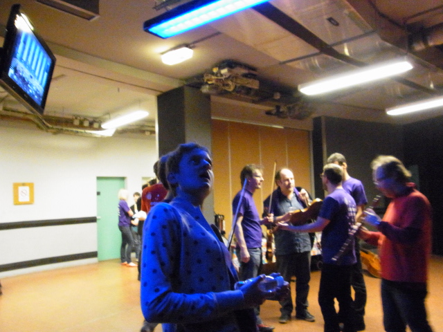 本番前の舞台裏。みんな調弦したり、ヴァイオリンのルーシーが固まってポーズしてくれました。