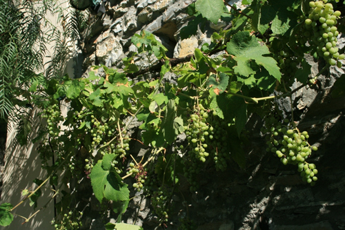 お庭の横には何と数百年昔の教会があります。素晴らしい風景ですね。ぶどうはお庭で取れた物。太陽を一杯に浴びた無農薬のぶどうでとても美味しかったです。