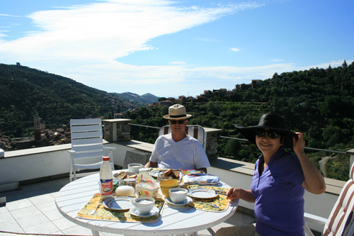 毎日朝ご飯はテラスで。陽子さんと旦那様のクラウスさん。
