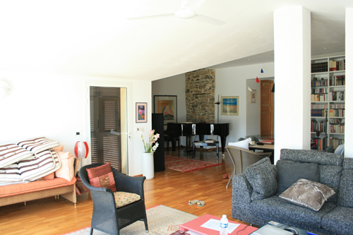 ピアノの位置から外を見ると、Dolcedoの街とその先に地中海が見えるという夢の様な風景!