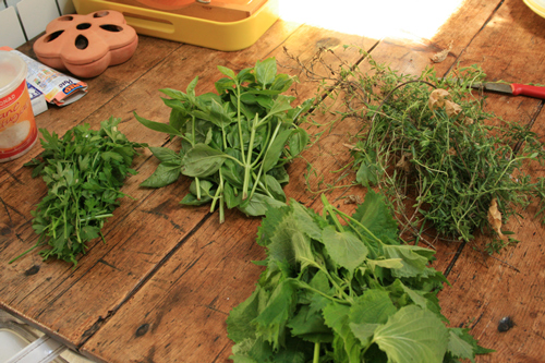 お庭で取れたイタリアパセリを刻んで入れます。