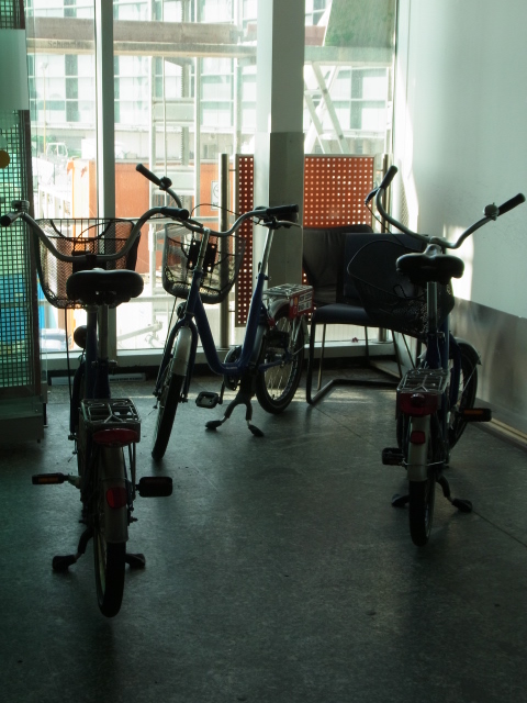 レストランの横に店員さんの移動用の自転車を発見!私もこれでゲート移動できたら3倍は早いのに!!
