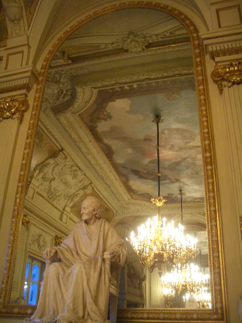 17世紀にモリエールの演劇などを上演し始めた歴史ある、コメディー・フランセーズのサロン。ヴォルテールの像。