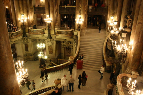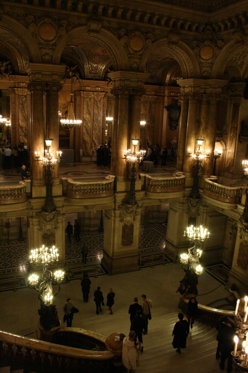 パリのオペラ座。オペラ座の建築デザインコンクールで優勝したガルニエさんが建築を手がけたことから、Opera Garnierとパリでは言います。というのは、ミッテラン大統領の頃に新しいOpera Bastille(フランス革命の発端となったバステイーユ広場にあります)を建てたので区別するため。こちらの由緒あるガルニエの方がやはり雰囲気を堪能できますが、上の天井桟敷の席などだと、舞台の半分見えなかったりもしますが、バステイーユはその点全ての席で見れるように設計されています。