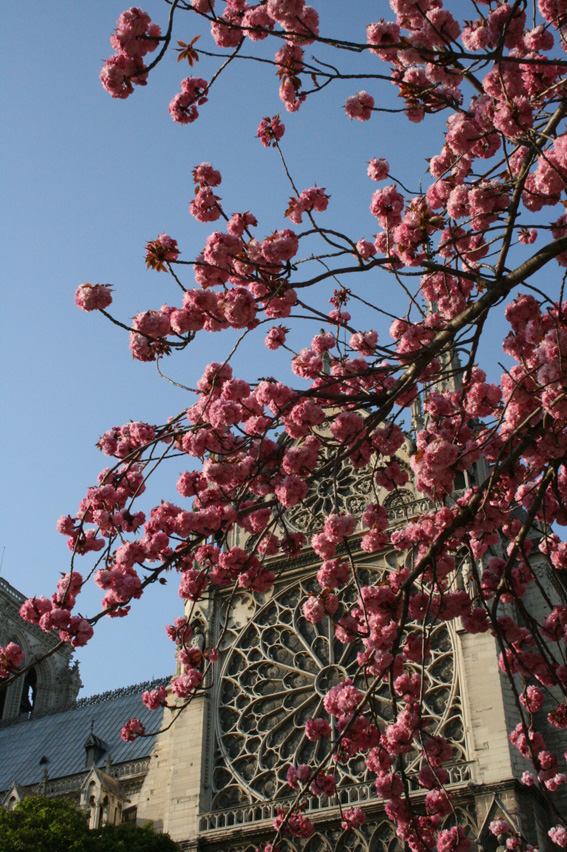 先週パリではとても良いお天気でノートルダム寺院の横には八重桜が満開でした。観光ボートも沢山の人達で賑わっています。