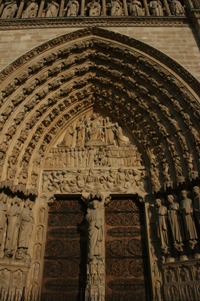 素晴らしいノートルダム寺院正面玄関の彫刻