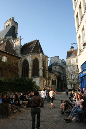 端をマレ地区側に渡るとかつてルイ・クープラン、フランソワ・クープランがオルガ二ストとして働いていたサン・ジェルヴェ教会が左側にそびえています。中ではやはりミサが行われていました。今でもここの教会には熱心な修道士と修道女が祈りを捧げています。