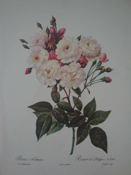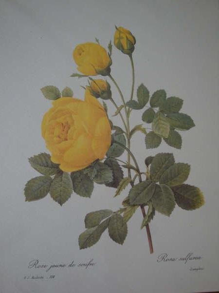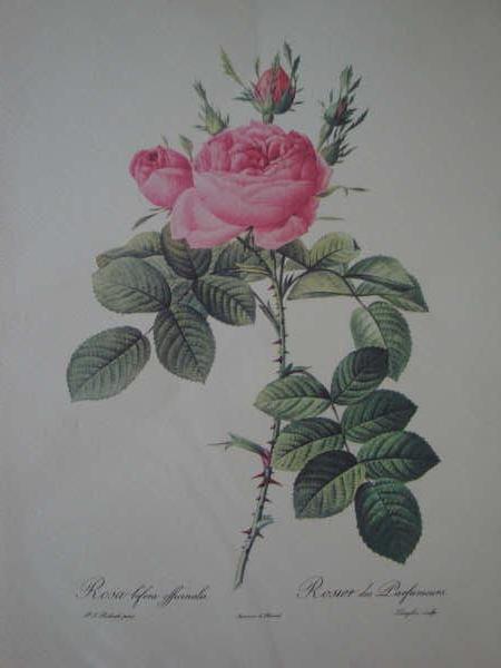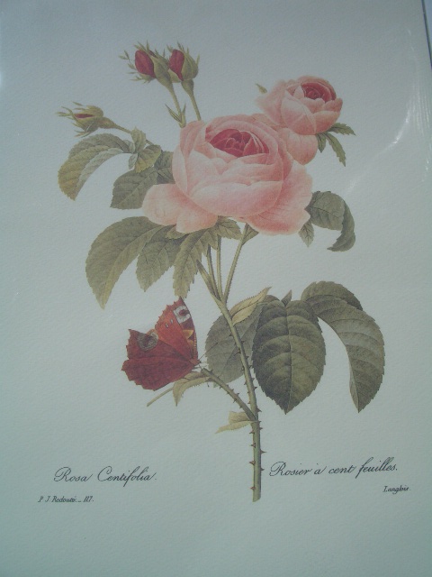 ちょうど、日本からパリに遊びに来た友人がセーヌ川沿いのブキニスト(トタン屋根で昼間だけおじさん達がロッカーを開けるようにして古本や絵などを売っている)で4枚のバラの絵を買ったけれど、もう2枚欲しいので・・・と言われて見に行ったアンテイーク風のバラの絵と重ねてみると何となく似たようなバラが今も普通に咲いているようです。