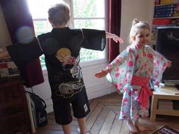 キャロりーヌちゃんがパリで見てキャーキャー言っていたという子供用浴衣をプレゼントしたら喜んでいました。